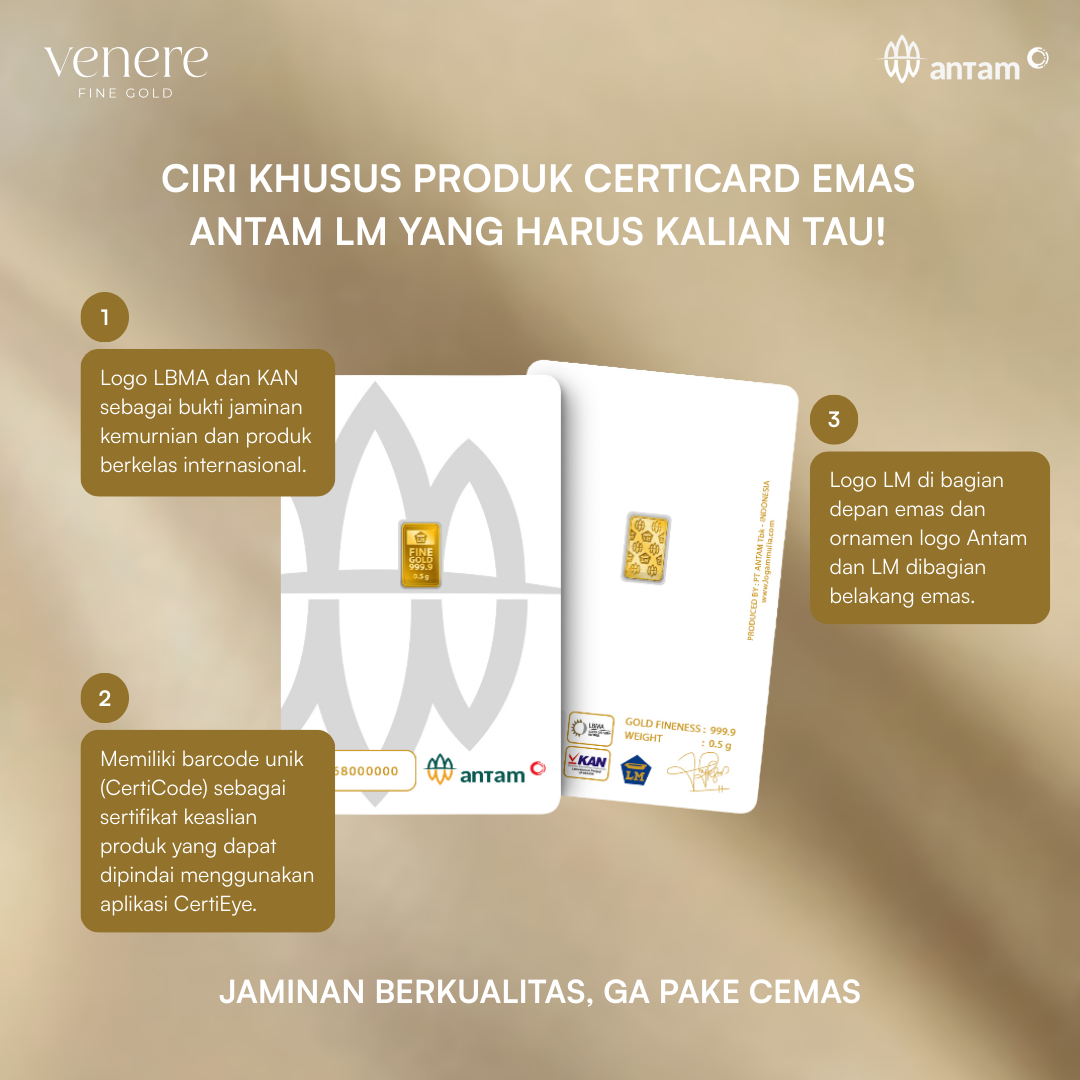 Hanya di venerefinegold.com Anda mendapatkan emas batangan ANTAM LM yang asli dengan kemurnian 999.9